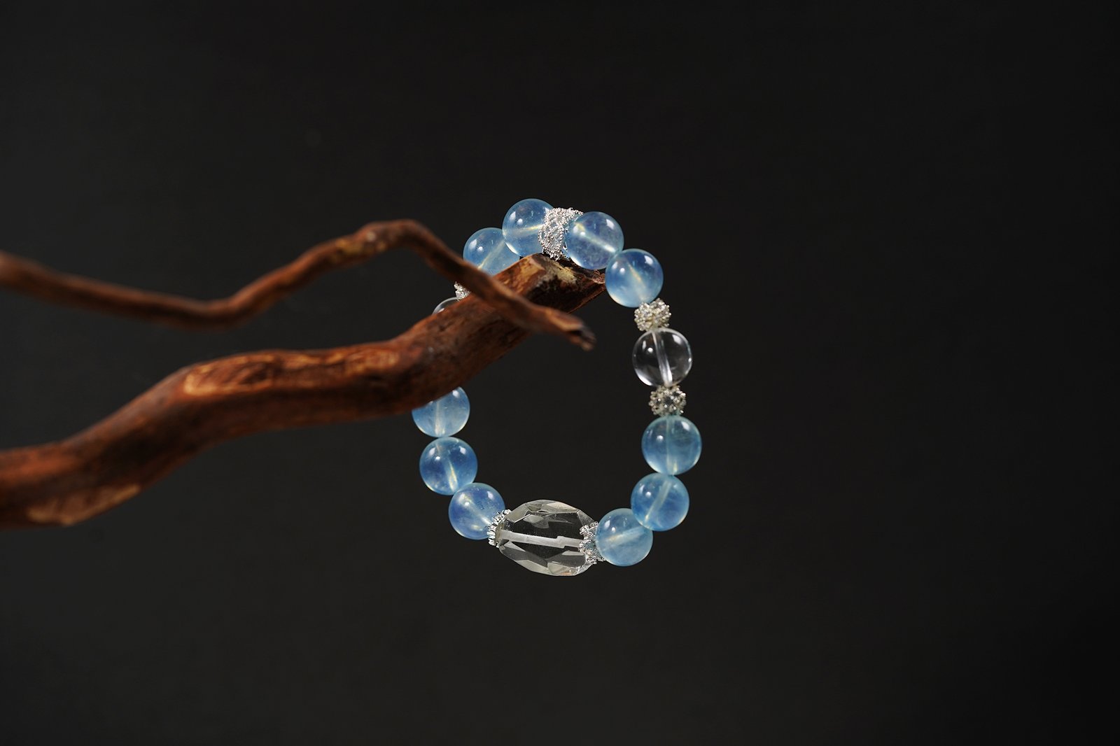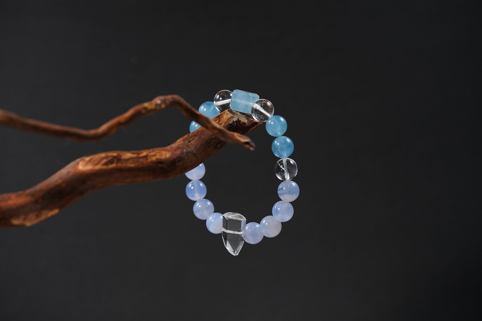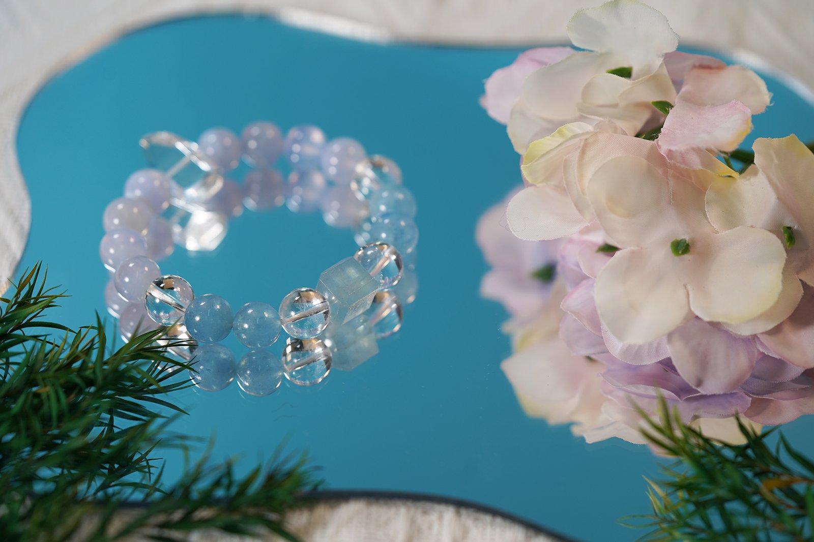 ☁️ "Sky Cathedral" Crystal Bracelet ☁️ 11.8mm Sky Blue Aquamarine + Clear Quartz + Faceted Clear Quartz