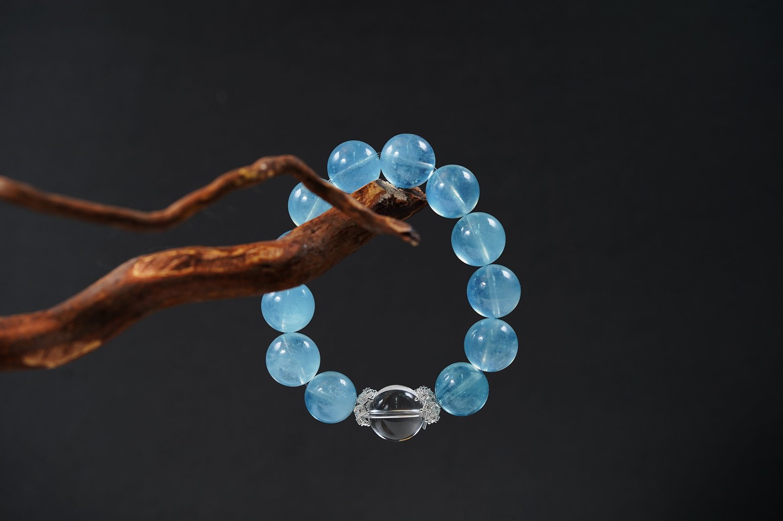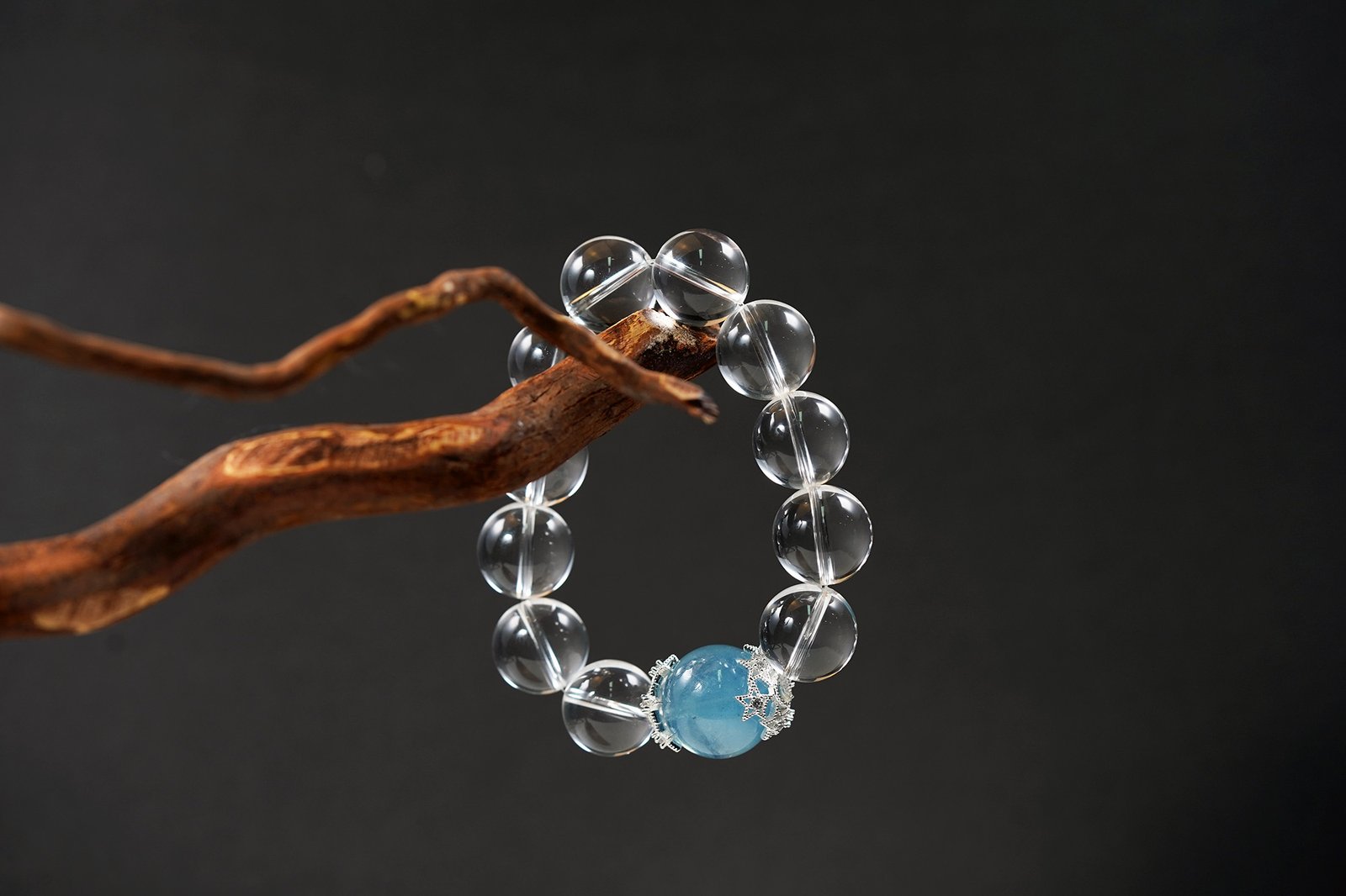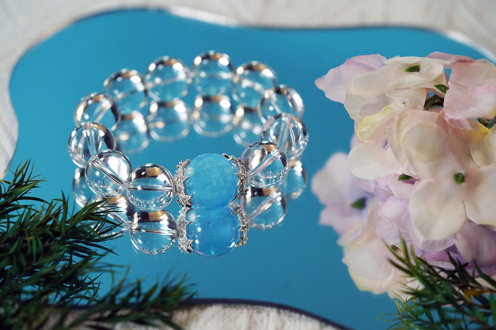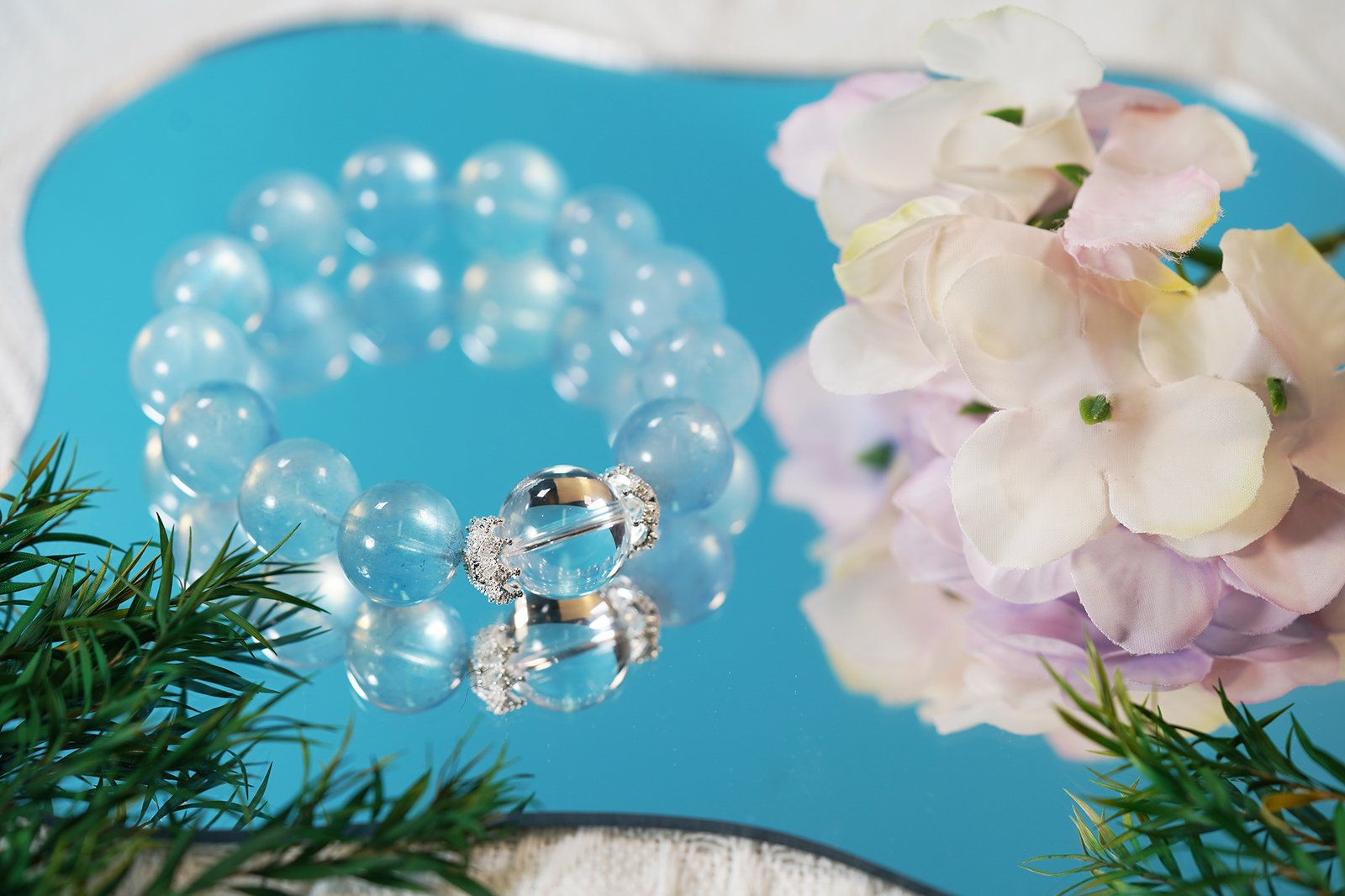 🌊 "Ocean Crown" Crystal Bracelet 🌊 15mm/16mm Aquamarine + 16mm Crown Jewel Clear Quartz
