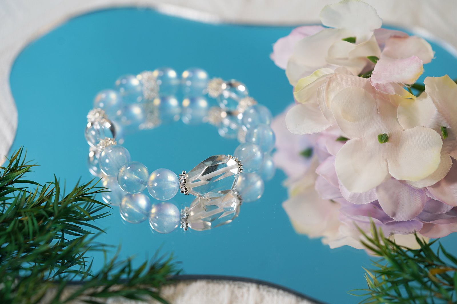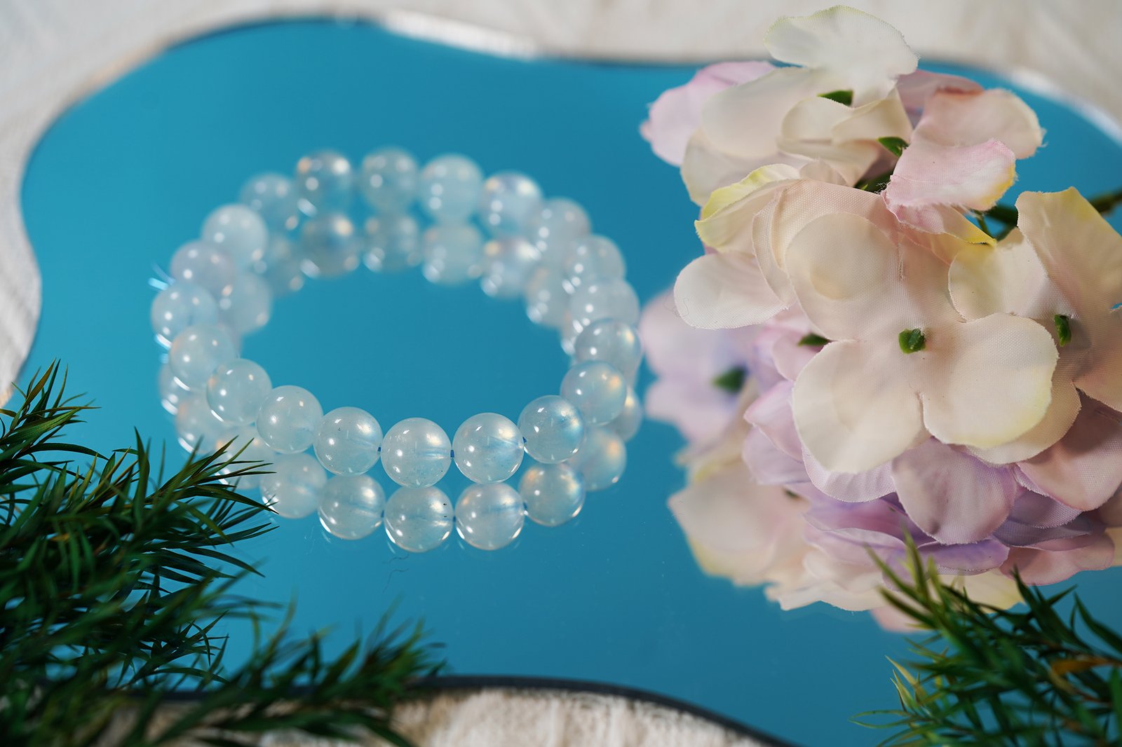 Moonlit Ocean Bracelet – 12mm Moonstone + 14mm Aquamarine | Divine Feminine Energy Flow