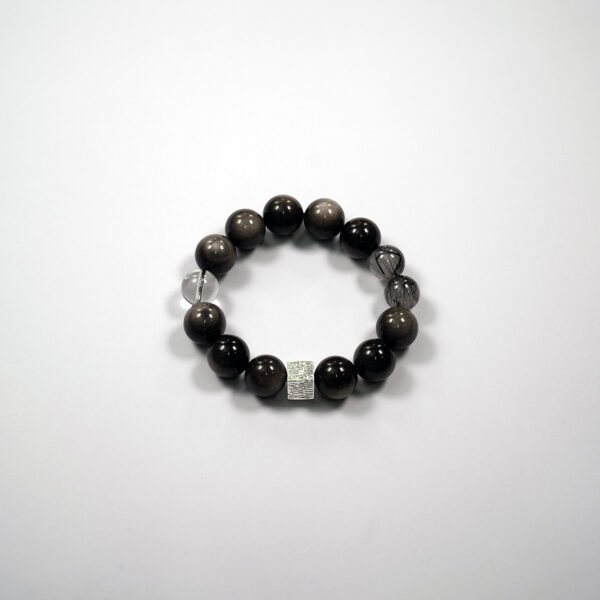 Obsidian, Black Rutile Quartz & White Quartz Bracelet – Protection & Clarity