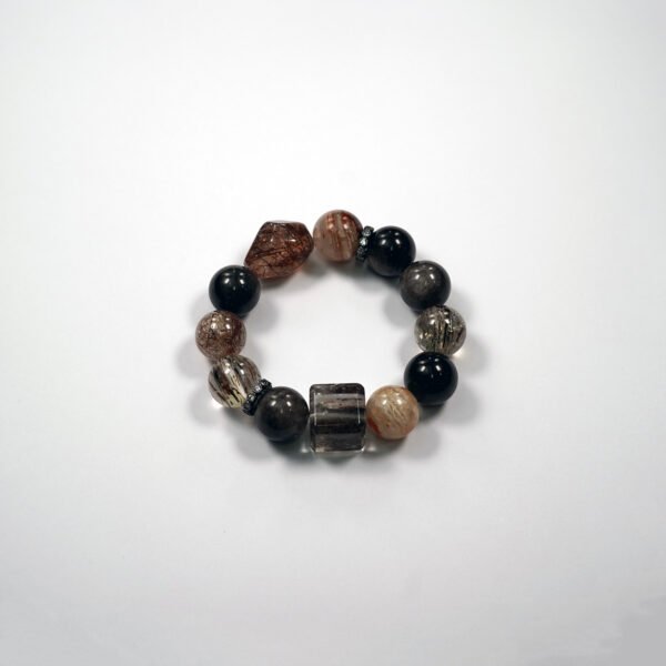 Majestic Guardian Bracelet – Multi-Layer Phantom Quartz, Black Gold Obsidian & Pure Obsidian | 16mm Power Beads for Ultimate Protection & Wealth Flow